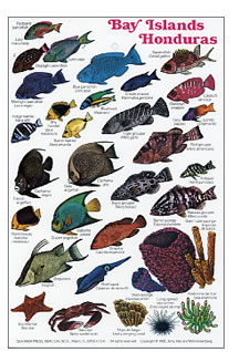 | Three special destination imprints of the Reefcomber's Field Guide combine 48 fishes and 24 invertebrates. This card is the same as the Cayman Islands card below. 6 X 9.5” |