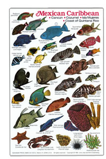 | Reefcomber’s Guide combines 75 colorful, frequently seen fishes, invertebrates and turtles of the Tropical Atlantic. 4.5 X 6" | ||||||||||||||||||||||||||||