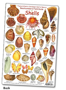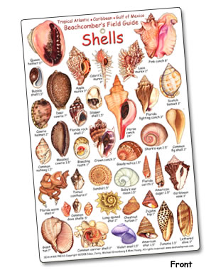 75 colorful shells frequently seen on the shores of the Tropical Atlantic and Caribbean. Take no live shells to keep these gems of the sea safe from extinction. Credit card plastic 6 x 9.5”