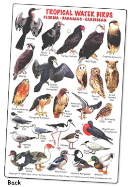 51 birds seen in the wetlands, swamps, mangroves and shorelines of Florida, Bahamas and the Caribean are depicted in all their splendor. Many diagnostic characteristics are unique to this Field Guide: All birds are shown full-figure, revealing feet often important for identification. Many of these birds are seen throughout the world during migration. Credit card plastic 6 x 9.5” |